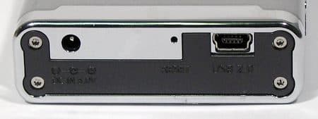 На нижней боковой поверхности расположен разьем для подключения внешнего блока питания, 5 контактный разьем mini-USB и отверстие с микровыключателем для «железной» перезагрузки устройства в том случае, если оно не реагирует на кнопки управления.