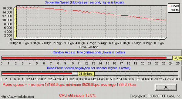 В том случае, если вы подключаете устройство к компьютеру с операционной системой XP или W2K, то вы можете не беспокоится о установке драйверов. Они вам понадобятся только в том случае, если вы будете подключать его к компьютеру с операционной системой Win98. У устройства нет никаких ограничений по записи и чтению любых типов файлов. Ниже приведены данные по скорости передачи данных при тестировании двумя довольно популярными теcтами.