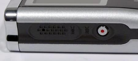 Устройство оборудовано встроенным микрофоном, что позволяет использовать его в качестве диктофона. Не могу не заметить, что дизайн той части устройства, где располагается микрофон и кнопка записи, делает его очень похожим на профессиональный диктофон. Качество записи встроенного диктофона вполне достаточно для непрофессионального применения, поскольку несмотря на хорошую чувствительность встроенного микрофона во время активации жесткого диска все его шумы попадают в запись. И, хотя уровень шума жесткого диска не очень высокий, но тем не менее, он вполне может испортить общую картину записи.