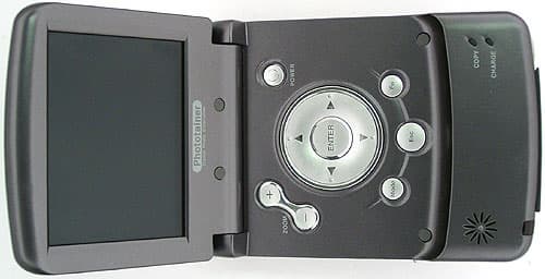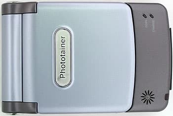 В отличие от подавляющего большинства комбайнов, плееров и фотовинчестеров Phototainer представляет собой устройство-раскладушку. Подход достаточно верный — вспомните Archos с его совершенно незащищенным экраном, занимающим большую часть поверхности устройства, и ограниченным вследствие этого набором органов управления, что привело к необходимости почти всегда использовать графический интерфейс даже для выполнения тех операций, для которых, по логике, стоило бы отдать отдельную кнопку. Но для медиаплеера такой подход нормален, а вот Phototainer претендует как раз на роль компаньона к цифровой камере, так что часто смотреть на экран не нужно, а вот прикрыть его чем-то — вполне возможно. В сложенном состоянии устройство достаточно компактно — 143 × 92 × 32 мм при массе 340 грамм, а многие операции можно выполнить, оставляя экран закрытым. Повредить его вряд ли кто сможет — со всех сторон прочная пластмасса. Крышка не закрывает кнопки для выполнения операций, для которых экран не нужен, пару светодиодных индикаторов да встроенный динамик.