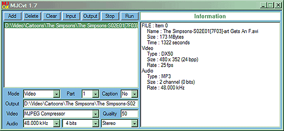 Вот так выглядит штатная программа-конвертер. Все очень просто, что немудрено ее размер всего 150 Кбайт (!), так что устанавливать многомегабайтные пакеты для работы с MPEG4 вам не придется. В качестве допустимого формата ввода рассматривается любой, который может быть открыт на компьютере. Дальше наша задача проста: загружаем все файлы, которые хочется прихватить в дорогу, выбираем, куда они будут записываться, нажимаем кнопку Run и готово. Удобно, что в качестве приемника можно просто указать само устройство. И совсем не придется ждать результата часами — кодек MJPEG в свое время был чрезвычайно популярен для захвата видео, по причине щадящего отношения к вычислительным ресурсам компьютера. Фактически он позволяет кодирование в реальном времени даже на чем-нибудь типа Pentium III 600, а на современных компьютерах результат куда выше. На Athlon 3200+ файл формата MPEG1 размером 220 Мбайт (порядка 22 минут видео) был перекодирован и записан на Phototainer за 6 минут. Средний фильм в DivX (любой версии) записывается минут за 20, в то время как в случае Archos мне б пришлось его часок перекодировать в неудачном случае (кодек 3.х, проще говоря, если б попался). В общем, с учетом всего вышесказанного обязательную переконвертацию серьезным минусом считать сложно.