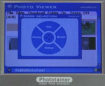 Сильным местом Phototainer по сути является он сам — вместо заказных микросхем мы имеем практически полноценный микрокомпьютер на базе RISC-процессора ARM720, 16 Мбайт ОЗУ и 4 Мбайт флэш-памяти для хранения операционной системы (можно бы хранить ее и на диске, но последний может быть ненароком отформатирован :)). А операционной системой устройства является почти обычный Linux. В результате я не удивлюсь, если в ближайшее время число поддерживаемых функций будет увеличено (дополнительные модули, кстати, можно и на винчестере хранить — их-то после форматирования восстановить легко), а существующие будут серьезно модифицированы, так что увидим мы заметно обновленное устройство. Кое-какая работа ведется уже сейчас — недолго ждать осталось полной русификации системы.