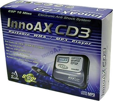 Фирма Innovision до недавнего времени была известна российским пользователям компьютеров исключительно своими видеокартами, однако и она, как и многие аналогичные компании, решила расширить свой ассортимент товаров, выпустив ряд мультимедиа-продуктов, одним из которых стал MP3/CD-плеер. При этом компания сразу решила соригинальничать, выпустив не стандартную модель под 12 см диски, а более "экстремальную" под 8 см диски. Кратко напомню, что 8-сантиметровые диски входят в стандарт ISO, описывающий диски и накопители CD-ROM. Более подробно об этих дисках можно почитать вот в этой статье, где я некоторое время назад рассматривал перспективы применения этих дисков. Хочу с удовлетворением заметить, что с тех пор ситуация изменилась к лучшему. Сейчас диски этого форм-фактора, причем как CD-R, так и CD-RW, можно купить практически везде. Хочется надеяться, что и мои статьи способствовали второму рождению 8 см CD и их о широкому распространению :). Однако наибольший вклад в быстрое распространение этого формата внесло массовое увлечение всего мира форматом хранения музыки MP3. Дело в том, что емкость 8 см CD в лучшем случае составляет всего 210 Мб, что очень мало для хранения музыки в формате CD-DA, но достаточно для нескольких музыкальных альбомов в формате MP3. Однако мы отвлеклись. Итак, давайте посмотрим, удалась ли первая проба сил на рынке MP3/CD-плееров компании Innovision плеер InnoAX CD3.