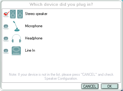 При подключении штекера в разъем по умолчанию автоматически появляется панель «Audio Wizard». Автоматическую детекцию можно отключить, а также самостоятельно вызвать соответствующей кнопкой в верхней части основного окна.
