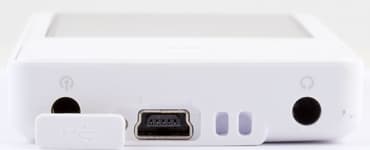 Эта заглушка создана дабы не портить симпатичный внешний вид плеера, однако она создает некоторое неудобство, в частности, если ее вытащить не до самого предела, то она мешает вставить кабель. Рядом с ней находится ушко для шнурка. Собственно, не резон носить на шее девайс такого размера, но короткий шнурок для более удобного извлечения плеера из кармана к нему можно прицепить.