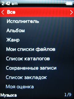 Библиотека состоит из трех основных пунктов, все они стандартны — Исполнитель, Альбом и Жанр. Помимо них в меню присутствует множество других категорий: