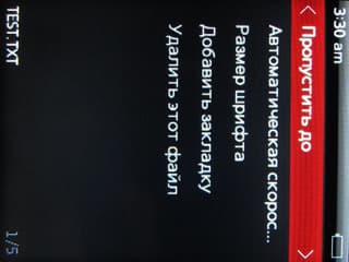 Из настроек доступны: переход к определенному проценту в файле, автоматическая прокрутка, размер шрифта, установка закладки. Как видим, плеер позволяет устанавливать закладки на все возможные файлы — будь то видео, музыка или текст. Отметим, что плеер достаточно быстро открывает большие файлы размером по 2,5 МБ.