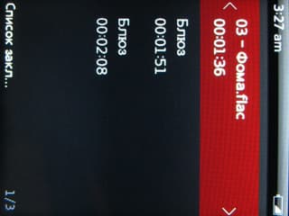 Данная модель — одна из очень немногих, присутствующих на рынке, которая сможет удовлетворить любителя аудиокниг. Во-первых, не замечено и не объявлено ни о каких ограничениях на количество файлов и директорий. Да и какие могут быть ограничения, когда внутренняя память может достигать 8 ГБ? Во-вторых, это вышеупомянутая возможность делать закладки. Их список отображается в соответствующей категории меню Музыка и содержит необходимую информацию — имя файла и время, на которой закладка была сделана.
