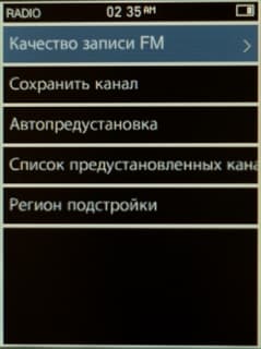 Здесь тоже все стандартно и так же, как в iriver E100. Есть автопоиск с запоминанием первых 20-ти найденных станций, можно их добавлять в память и в ручную. RDS в плеерах от iriver еще не встречался, и iriver E200 не исключение. Имеется возможность записи с радио, ее битрейт настраивается, верхний предел 192 кбит/с, чего вполне достаточно.