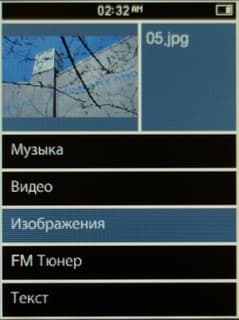 iriver E200 умеет открывать картинки форматов JPEG, GIF, PNG, BMP. Все тестовые файлы плеер отобразил хорошо. Куда-то делся браузер из превью-изображений, который был в iriver E100, теперь он представляет собой просто список имен файлов, то есть нужную картинку теперь сложнее найти, если не знаешь ее имени. Фотографии можно поворачивать с шагом в 90 градусов, но нельзя увеличивать, чтобы рассмотреть детали. В опциях имеется возможность посмотреть дополнительную информацию о кадре ширину, высоту, год создания, формат сжатия.