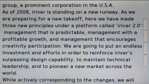 iriver всегда придумывает что-нибудь эдакое в плане управления, не обошлось без сюрпризов и на этот раз. На буклете, который лежит вместе с плеером в коробке, красуется надпись «Like a magazine», что в переводе с английского «Как журнал». Действительно, если взглянуть на главное меню, можно заметить явную аналогию с журналом.