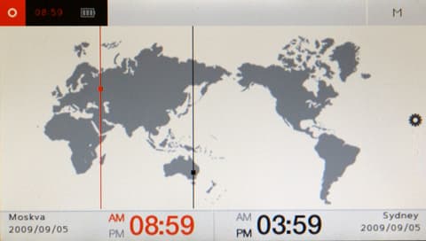 Три функции, которые открываются нажатием на текущее время в главном меню. По умолчанию открывается функция «Мировое время». Она проста и стандартна вы можете выбрать два города, для которых будет отображаться текущее время, дата и местоположение на карте.