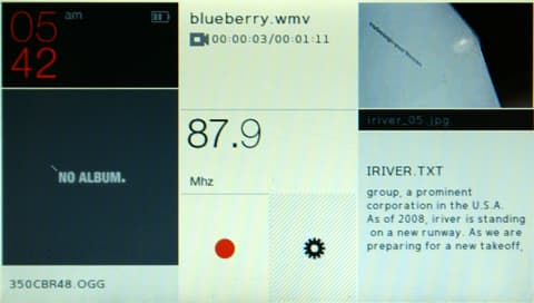 Области, отвечающие за запуск функций, не одинакового размера, они как бы сверстаны на странице, и в зависимости от своей важности имеют различный размер. Такая организация главного меню не только необычна, она оказалась еще и чертовски удобной. В каждой функции есть кнопка вызова главного меню, и можно быстро, ничего не прокручивая, открыть любую другую функцию. В общем, честь и хвала дизайнерам iriver за красивый, необычный и при этом практичный дизайн меню.