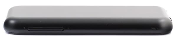 На правом торце — микрофон и качелька управления громкостью, тоже удобная. Кстати, когда все органы управления на лицевой стороне заблокированы, кнопки громкости, как самые востребованные, остаются рабочими — очень практично и логично.