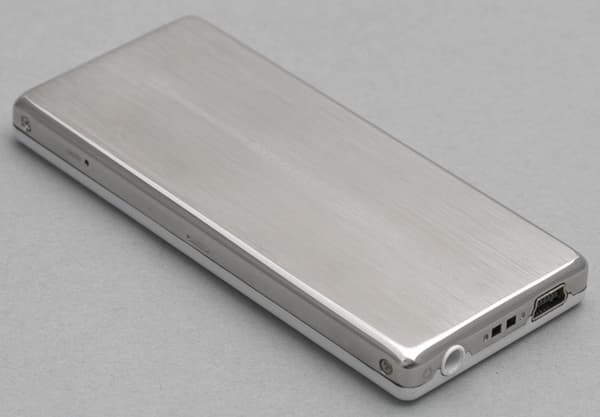Задняя стенка устройства металлическая. Причем на ребрах плеера металл этот глянцевый, а вся задняя поверхность как бы натерта наждаком продольно. Это, с одной стороны, лучше, чем если бы вся она была зеркально-глянцевой, но с другой все же не отрицает появления на ней царапин при неосторожном обращении они будут появляться.