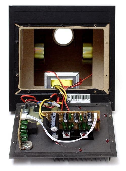 Применяемые в сабвуфере динамические головки совершенно одинаковые. Их диффузоры выведены на боковые панели и от механических повреждений закрыты металлическими решетками. Диффузор динамика выполнен из бумаги и его диаметр составляет 10,5 сантиметров. Подвес изготовлен из вспененного полимера.