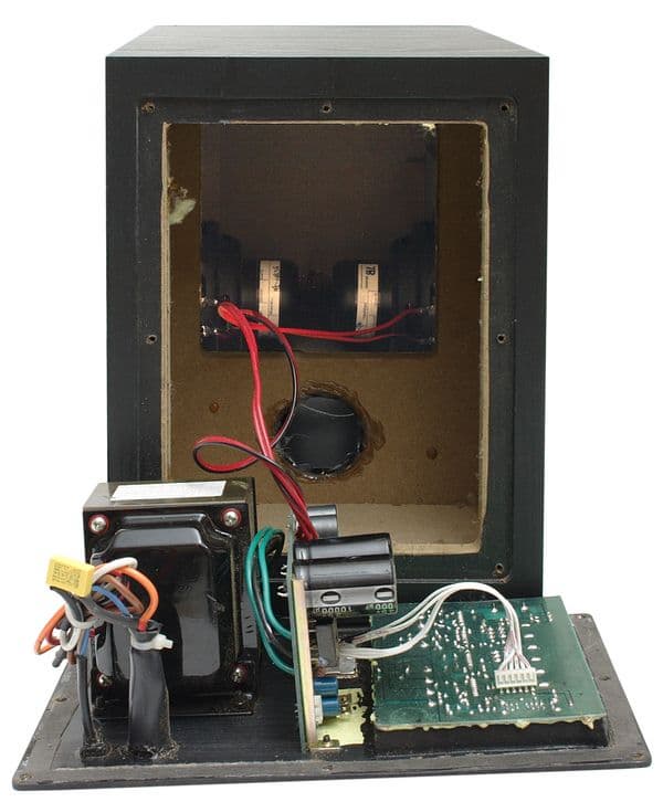 Внутри корпуса предусмотрена панель, разделяющая пространство на две практически равные не изолированные камеры. Панель также служит распоркой, предотвращающей паразитные вибрации стенок корпуса и трубы фазоинвертора на больших уровнях громкости. В той части, где расположены динамики, пространство звукопоглощающим материалом не заполнено. С другой стороны располагается Ш-образный трансформатор и плата с элементами.