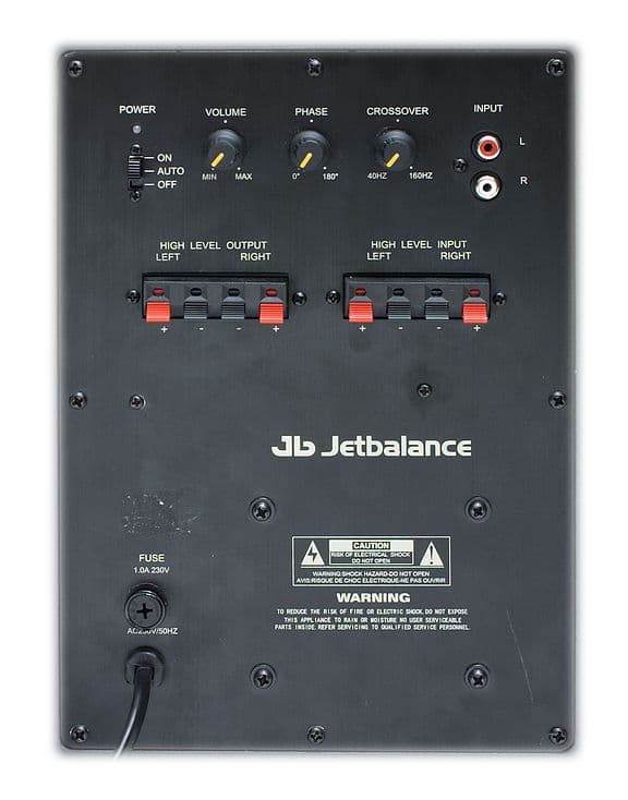 В целом звучание JetBalance JB-180 неплохое. К числу прочих преимуществ сабвуфера JetBalance JB-180 стоит отнести наличие регуляторов фазы и частоты среза фильтра низких частот. Это дает возможность настроить звучание сабвуфера нужным образом для согласования со стереоколонками.