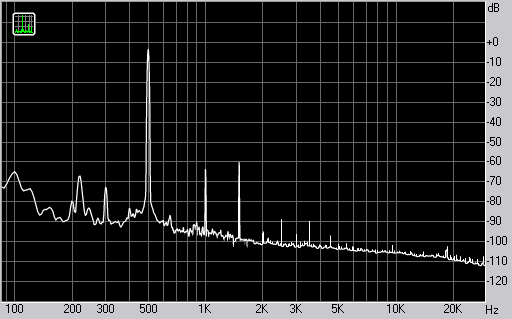 Спектр сигнала, воспроизводимого колонкой при подаче частоты 500 Гц