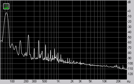 Спектр сигнала, воспроизводимого колонкой при подаче частоты 50 Гц