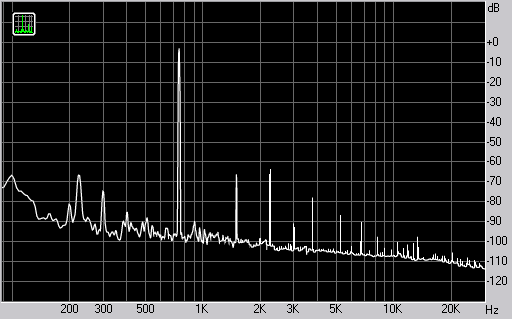 Спектр сигнала, воспроизводимого колонкой при подаче частоты 750 Гц