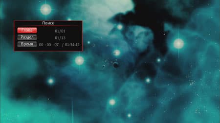 Во время просмотра видео пользователь имеет возможность увеличить скорость воспроизведения (32х в обе стороны), замедлить воспроизведение (3/4х, 1/2х, 1/4х, 1/8х, 1/16х, 1х), включить покадровый просмотр (нажатиями кнопки на пульте ДУ видео проматывается на один кадр вперёд). Центральная кнопка на пульте ДУ выполняет функцию Пауза/Продолжение просмотра, что удобно. Само собой, имеется также обязательная функция быстрого перехода на заданную пользователем позицию (GoTo).