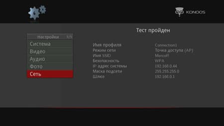Если с проводной сетью проблем не возникает никогда, то соединение Wi-Fi обычно преподносит сюрпризы. Так случилось и в этот раз. Плеер отлично распознал присоединённый к нему USB Wi-Fi адаптер Canyon CNP-WF518N2, и в считанные секунды (после ввода пароля-идентификатора, разумеется) беспроводное соединение установилось. Однако скорость соединения оказалась вовсе не ожидаемо высокой, соответствующей стандарту 802.11n.