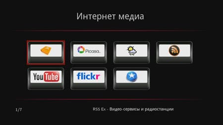 Итак, с воспроизведением локального контента мы, кажется, разобрались — и впечатления остались довольно приятными. Рассмотрим теперь имеющиеся в плеере интернет-службы, всего в существующей прошивке их насчитывается семь:
