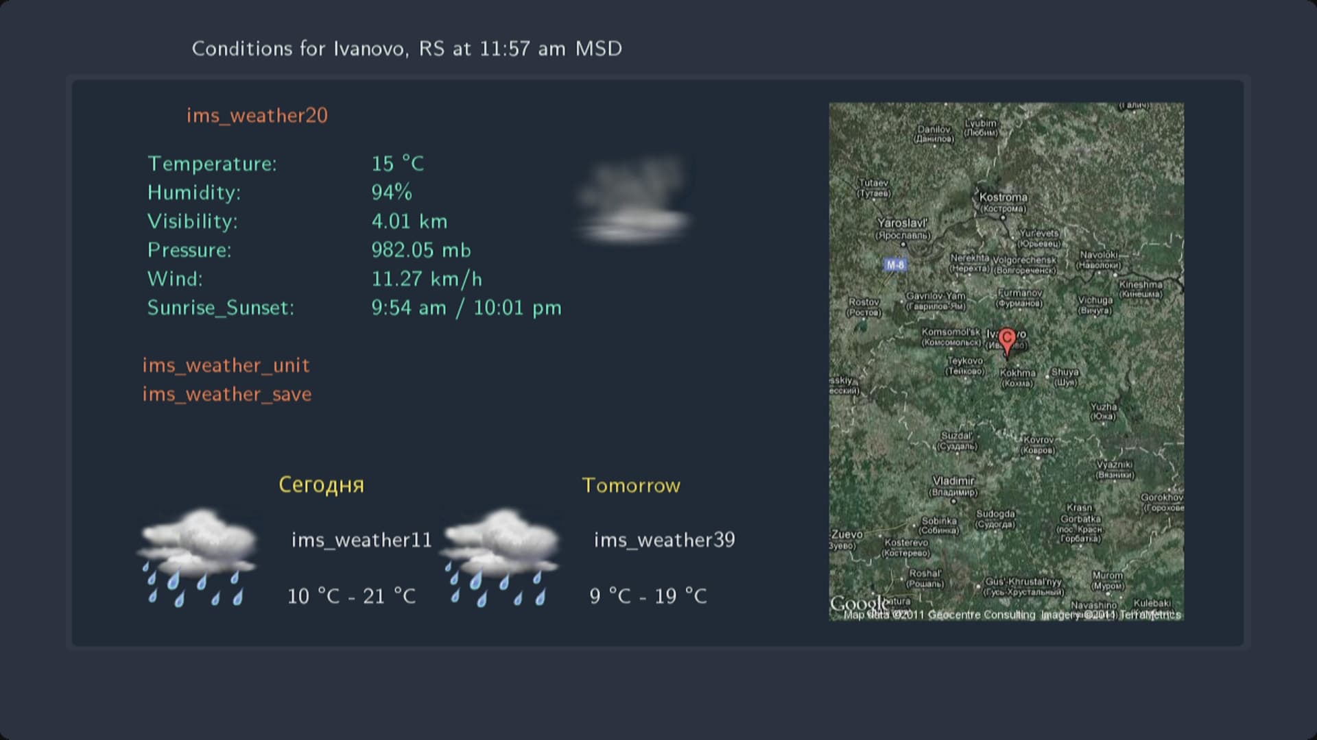 Время от включения аппарата до полной его готовности к работе составляет 16-17 секунд. После загрузки пользователь увидит окно главного меню с восемью пунктами (работа плеера рассматривалась с прошивкой версии 3.0816.01). В верхней части окна имеются сведения о текущем положении дел в небесной канцелярии, даже местоположение плеера правильно определилось (город Ivanovo), вот только температура почему-то отображается в Фаренгейтах, несмотря на присутствующую здесь латинскую C.