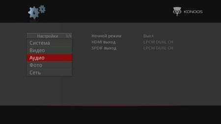 Пункт Аудио выглядит несколько бедно в сравнении с Видео: всего лишь три подпункта.