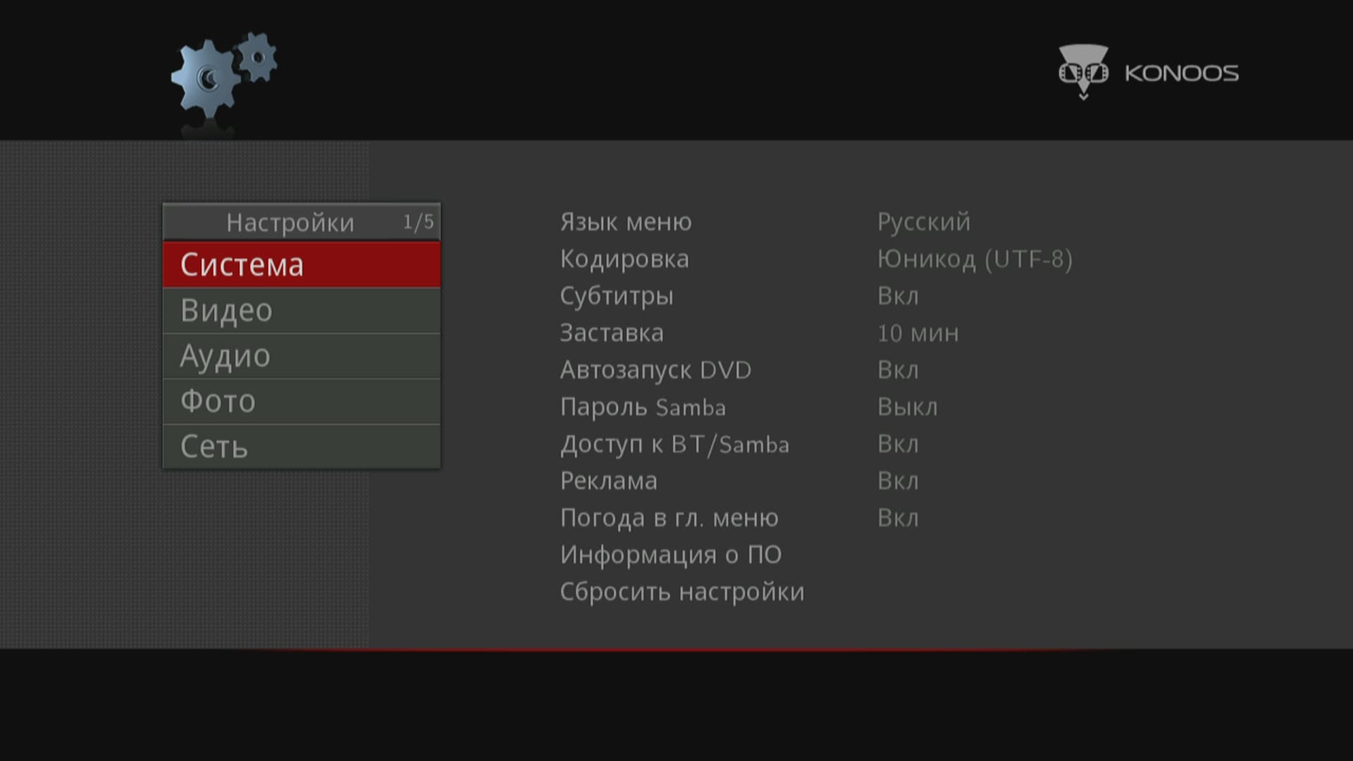 Остальные свойства плеера можно отнести к его плюсам: быстрая сеть, контейнерная и форматная всеядность, широкий выбор сервисов… Ну и, разумеется, удивительно невысокая стоимость: средняя цена (количество предложений) медиаплеера Konoos MS-500 составляет Н/Д(0).
