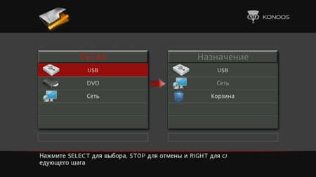 В заключение следует упомянуть о возможностях встроенного в плеер файлового браузера: для копирования файлов с носителя на носитель либо переименования файлов или папок вам не потребуется ПК. Плеер в состоянии все эти операции произвести сам, достаточно лишь нажать на пульте ДУ кнопку Option или Copy. Копирование либо перемещение файлов/папок осуществляется во всех возможных направлениях и на все доступные носители.