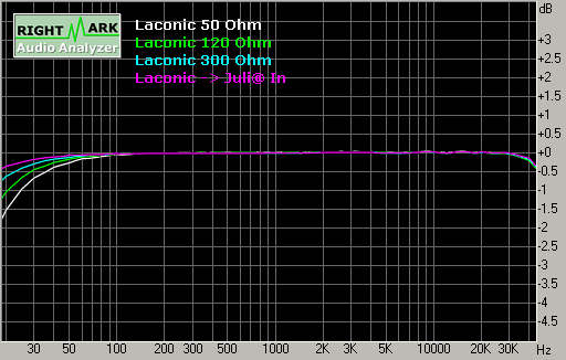 | Test | Laconic 50 Ohm | Laconic 120 Ohm | Laconic 300 Ohm | Laconic -> Juli@ In |