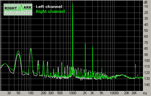 | Stereo crosstalk, dB: | -79.9 | Very good |