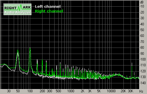 | Stereo crosstalk, dB: | -65.5 | Good |