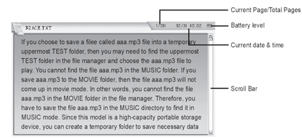 T600 вполне мог бы оказаться одной из самых удобных «читалок» текста из неспециализированных, если бы не одно «но» — на момент тестирования плеер абсолютно не был русифицирован. Если в случае тэгов это лишь досадный, но мелкий недостаток, то перспектив в таком случае у устройства в роли электронной книжки на нашем рынке ровно никаких. А кириллицу он не понимает ни под каким соусом — ни в виде кодировки Windows, ни в каком-либо из юникодных форматов. Печально. Впрочем, исправимо — если у производителя возникнет желание поработать над исправлением данной проблемы. А может, и производителя ждать не придется: в корне диска лежит файлик UNICODEF.FON, что показывает, во-первых, то, что плеер явно ориентирован на универсальные коды символов, а, во-вторых, что для добавления к нему русских букв не понадобится даже корежить firmware — вполне возможно, что их можно просто внести в данный файл.