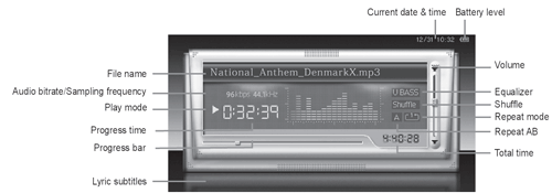 К сожалению, руководства по эксплуатации (откуда картинка и «выдрана») на русском языке обнаружить пока не удалось, однако для ее понимания совсем не требуется хорошего знания английского языка. В общем-то, человеку, знакомому хоть с одним из плееров, и никакого знания языка уже не требуется — схемы управления портативными устройствами давно уже «вылизаны» поколениями эргономистов, так что что-то из ряда вон выдающееся придумать крайне сложно. Производители же видеомоделей до сих пор сохраняют определенную консервативность, «доверяя» только нормальным кнопкам и механическим переключателям, а не новомодным сенсорным органам управления. Что касается последних, так у меня вообще сложилось впечатление, что их разработчик явно родом из какой-то южной страны — оперировать сенсорами зимой на улице, мягко говоря, занятие не самое приятное. Когда кончики пальцев хоть немного утратили чувствительность, добиться того, чего вам хочется, можно не всегда с первого раза. Кроме того, и сами сенсорные органы управления на холоду ведут себя не всегда лучшим образом. В то же время кнопка — она и в Африке кнопка, и в Арктике кнопка ;) Благо последние на крупном корпусе видеоплеера и размещать легко, и благодаря большому экрану придумывать им какую-то «хитрую» функциональность необязательно. Благодаря управлению при помощи системы меню, можно ограничиться даже пятью кнопками. Четыре дополнительных — лишь добавочная степень удобства: чтобы не нужно было лазить в меню для установки закладки или переключения режима работы эквалайзера.