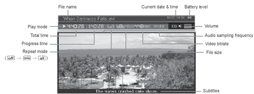 Сразу же бросаются в глаза весьма низкие поддерживаемые параметры для WMV — по сути этого достаточно разве что для бродящих по сети низкокачественных роликов, нежели для продаваемых в онлайновых магазинах фильмов. Впрочем, последнее на текущий момент проблем все равно вызвать не способно: МТР плеер не поддерживает, его удел, соответственно, файлы без DRM, а они крайне редко бывают качественными. Поддержка же остальных форматов вполне достаточна, дабы использовать самые разные источники их получения, в том числе и пиратские диски с фильмами в формате MPEG4 (и даже, судя по практическим проверкам, DivX 3). Кроме хорошей совместимости, плеер может похвастаться также корректной поддержкой файлов с несколькими звуковыми дорожками — он позволяет выбрать нужную при открытии файла при помощи появляющегося в данном случае меню. А вот сами по себе меню в файлах MPEG4 не поддерживались, равно как и работа с субтитрами (в формате SMI) была ограниченной — при наличии нескольких их вариантов на разных языках, выбрать вручную нужный было невозможно. Так что программистам компании все-таки еще есть над чем поработать.