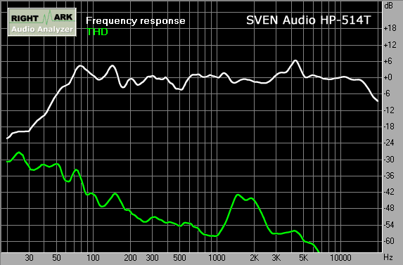 График АЧХ и КГИ фронтальной колонки набора SVEN Audio HP-514T