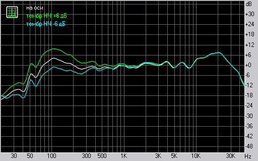 Измерения в разных положениях регуляторов тембра подтверждают значения цифр на индикаторе. Картина на спектре повторяет измерения модели SOLO 6 с аналоговым блоком регулировки тембра.