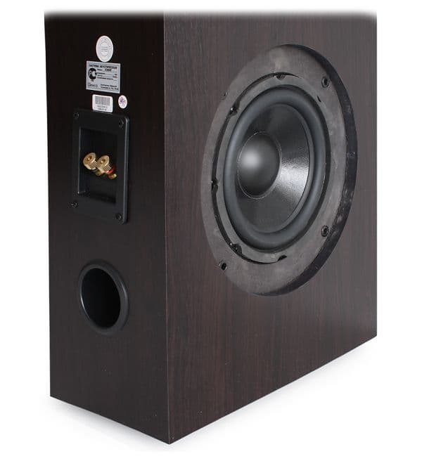 Размеры диффузора НЧ-динамика, включая подвес, составляют 17,5 сантиметров. От механических повреждений диффузор предохраняет защитная сетка, выполненная в виде деревянного обода обтянутого акустической тканью. Порт ФИ выведен на заднюю панель и располагается в нижней части корпуса.