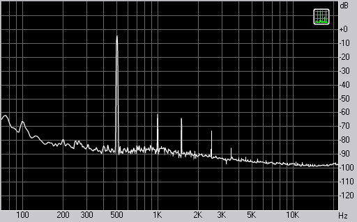 Спектр сигнала, воспроизводимого фронтальной колонкой при подаче частоты 500 Гц