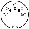 Интерфейс — старт-стопный последовательный "токовая петля" (активный передатчик, 5 мА, токовая посылка — 0, бестоковая — 1), скоростью передачи 31250 ±1% бит/с и протоколом 8-N-1 (один стартовый бит, 8 битов данных, один бит стопа, без четности). Передатчики и приемники должны обеспечивать длительность фронтов менее 2 мкс.Каждый инструмент имеет три соединительных разъема: In (вход), Out (выход) и Thru (копия сигнала с In через буфер). Все разъемы — типа female DIN-5 (СГ-5), вид с наружной стороны (стороны соединения):