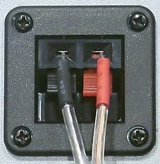 Подключение колонок производится посредством пружинных зажимов. Длина проводов для фронтальных и центральной колонок составляет пять метров, тыловыхсемь. На концах проводов для удобства подключения имеются опознавательные красные и черные резинки.