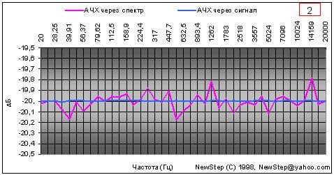 Вывод: отклонение АЧХ от идеальной составляет меньше +/- 0,02 db.