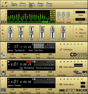 JetAudio не новинка, с первыми версиями я сталкивался еще года полтора назад. Симпатичный интерфейс, немного неудобный в части загрузки плей-листа, но это лично для меня. Проигрывает все подряд: CD, MIDI, WAV, MP3, RealAudio и т.д. Есть встроенный микшер, ревербератор и эквалайзер. Поддерживается работа с CDDB. Но упоминания в нашем обзоре этот проигрыватель заслужил не поэтому. Дело в том, что в JetAudio встроен DSP, точнее функцию DSP выполняет CPU ситсемы, а управляется все это программой JetAudio. Работает все это вполне прилично. Ревербератор позволяет накладывать на звук, воспроизводимый при проигрывании mp3 файлов такие эффекты, как reverb, flange, phaser, robot и т.д. Плюс есть возможность расширения стерео базы звучания (3D и Wide эффекты). В общем, забавная игрушка и, главное, действительно работающие эффекты. При этом, чтобы использовать эти эффекты не нужно иметь какую то специальную звуковую карту. Адрес сайта разработчика: www.cowon.com