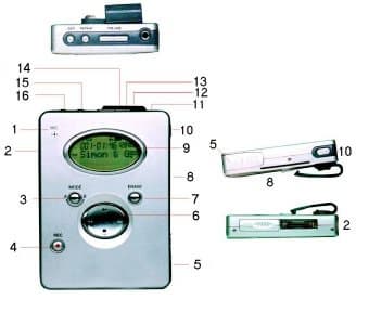 К слову, бродя по сети, мы наткнулись на сайт компании M2 (www.msquared.co.uk) , это Британская компания продает MPIO под собственной торговой маркой jazPiper. Фактически, jazPiper это MPIO, серебряного цвета и продающийся только в Великобритании. Впрочем, аналогичная ситуация и с MPMan F10, который продается на туманном Альбионе местной компанией и про Saehan там даже не упоминают. Зато на сайте MSquare мы нашли полезную информацию о самом плеере, плюс удобную картинку, которую мы использовали, чтобы показать расположение управляющих кнопок и разъемов плеера MPIO