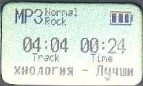 Полностью графический с разрешением 128×64 точки, правда, как я уже говорил, по совершенно непонятной причине без подсветки. Логически делится на три строки. В самой верхней слева индицируется режим работы (МР3, WMA или FM), а справа находится индикатор заряда аккумулятора. Между ними при прослушивании музыки отображается установка эквалайзера и состояние повтора, а в случае использования радио его режим работы (стерео или моно). Из второй строки мы можем узнать номер текущего трека и их общее число в памяти, а также текущую позицию проигрывания. В режиме же FM-радио именно в ней отображается частота текущей радиостанции. Третья же строка наиболее интересна. Впрочем, в режиме радио пользы от нее немного: номер текущей радиостанции, если она записана в памяти (к сожалению, отредактировать название, как можно было сделать в F35, здесь не выйдет), или слова "Tuning Mode", если мы находимся в режиме ручной настройки. А вот в режиме плеера отображается содержимое тэга в формате "Название Исполнитель Альбом". Поддерживаются все варианты тэгов: ID3 v. 1.xx и 2.хх (причем приоритет, как и в других плеерах, отдается последнему) и WMA. Что стало уже традицией для MPMan, нет никаких проблем с символами национальных языков (русским, в частности).