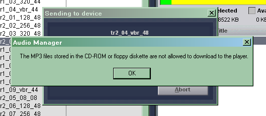 Ладно едем дальше. Берем диск, добавляем МР3-файлы в коллекцию, пытаемся записать их в память плеера или на карту памяти и…