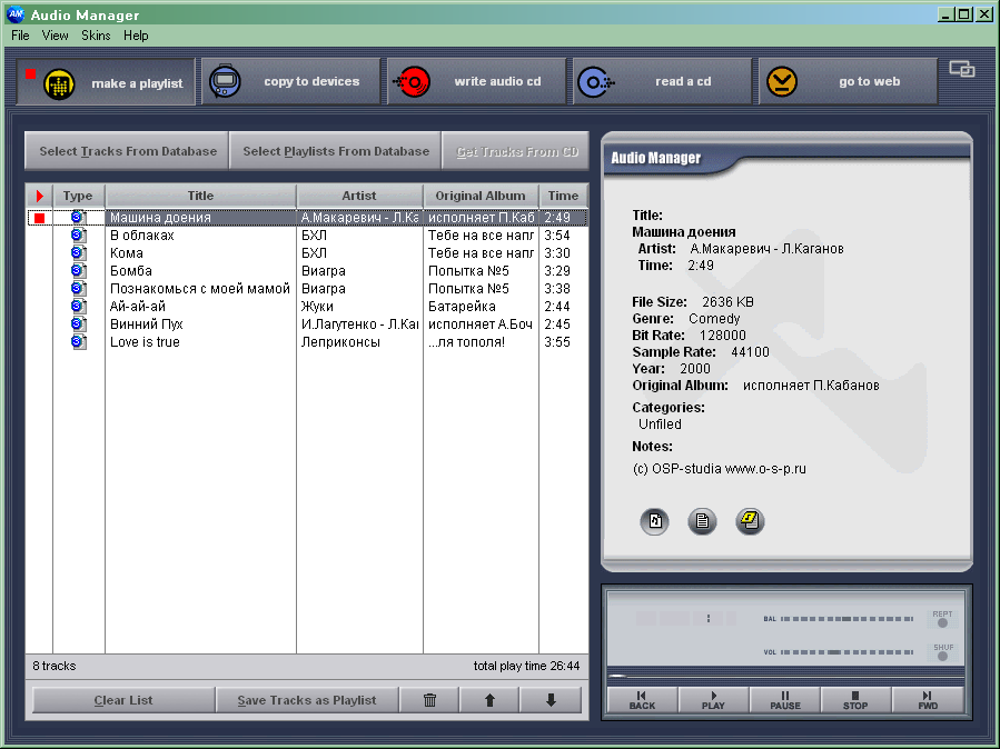 Есть ли хоть что-то хорошее в Audio Manager? Есть, и немало: все-таки программа достаточно удобная для всего, что не связано с нашим героем. Если бы мы рассматривали ее именно как all-in-one для работы с музыкой (проигрыватель, граббер, кодер, менеджер плейлистов и тэгов, программа записи аудиодисков), то заслужила бы данная программа довольно высокую оценку, поскольку реализовано все очень даже неплохо. Даже о людях, привыкших ранее к WinAmp, позаботились (Audio Manager в уменьшенном для проигрывания музыки виде выглядит прямо как этот плеер, да и экспорт *.m3u на хорошем уровне). Но как менеджер для портативного плеера, она не подходит. Слишком уж много недостатков для того, чтобы подобной связкой пользоваться.